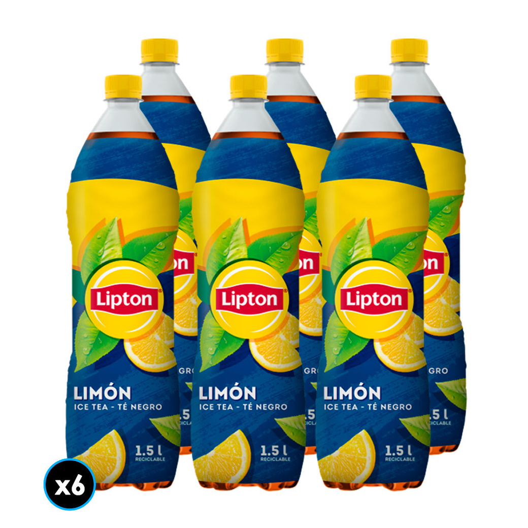 6x Té Helado Lipton Negro Limón 1,5 Litros.